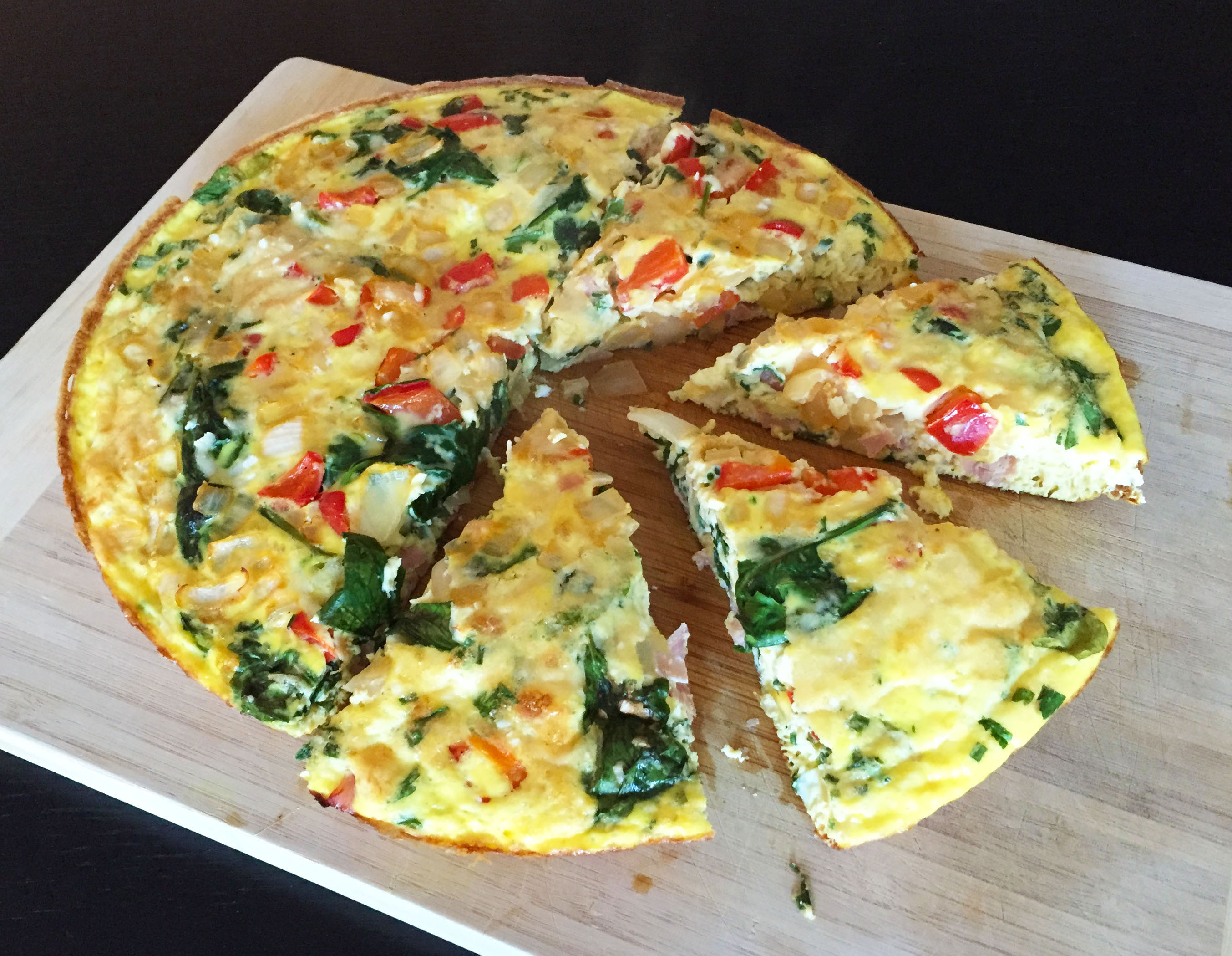 Other than a super fun word to say, a frittata is basically a quiche without the heavy, greasy, fattening crust. What you’re left with are fluffy, flavorful eggs! I often prep for this recipe ahead of time (sauté the veggies, dice the ham, chop the chives and parsley, and shred the cheese) so that when I have overnight guests, I can throw this together relatively quickly before they even wake up. Little do they know when they wander into the kitchen for coffee that breakfast is well on its way, finishing in the oven and about to hit the table!